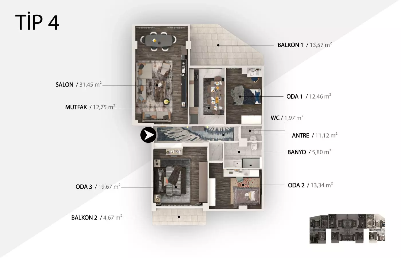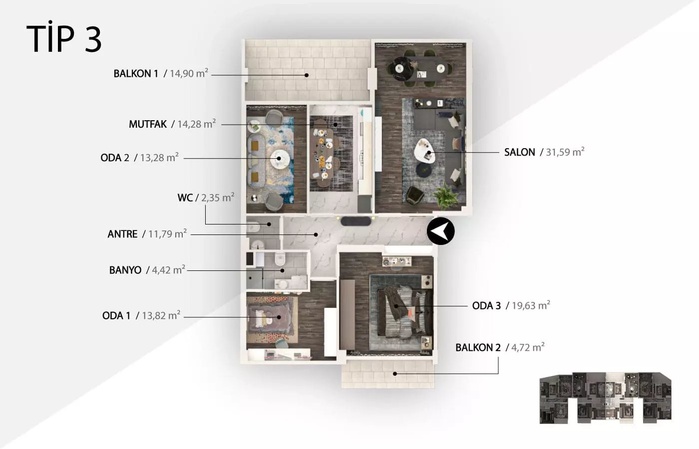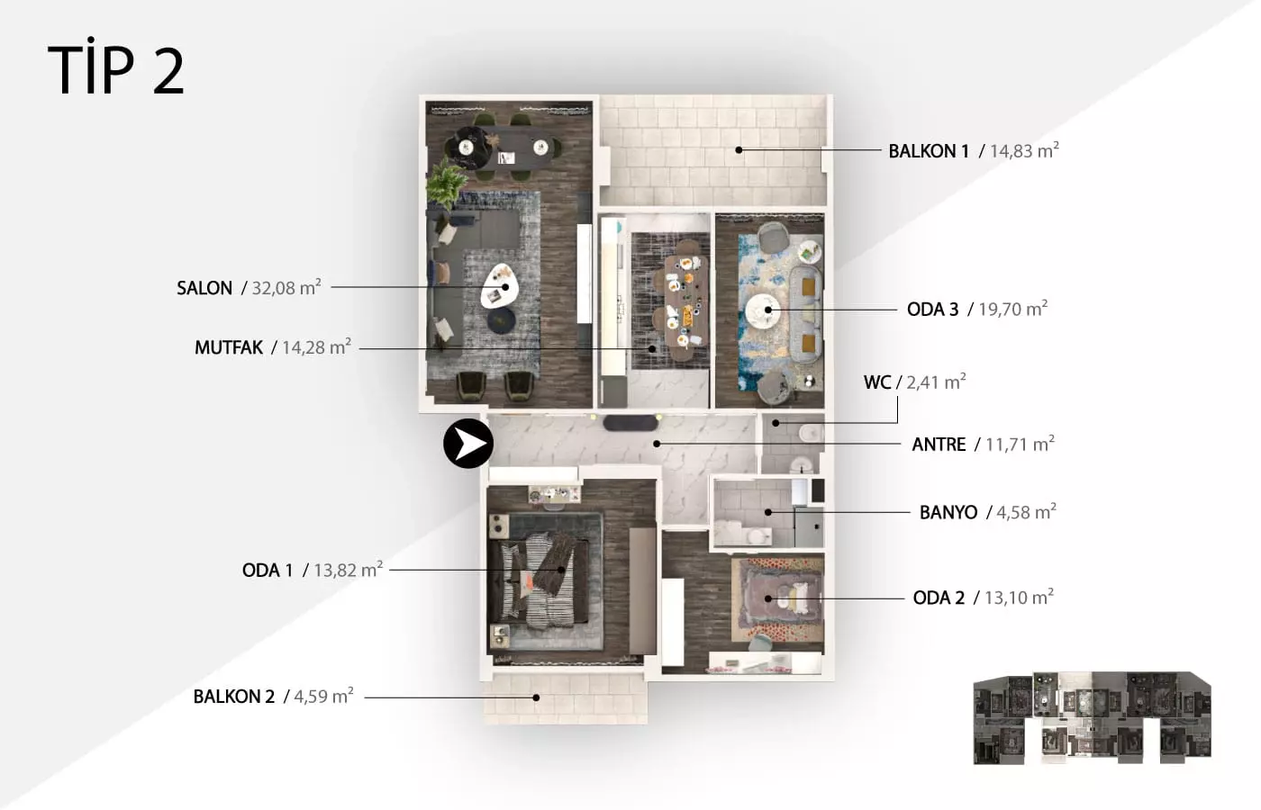 Geniş ve ferah daire seçenekleri ile aileler için büyük mutluluklar inşa ediyoruz.