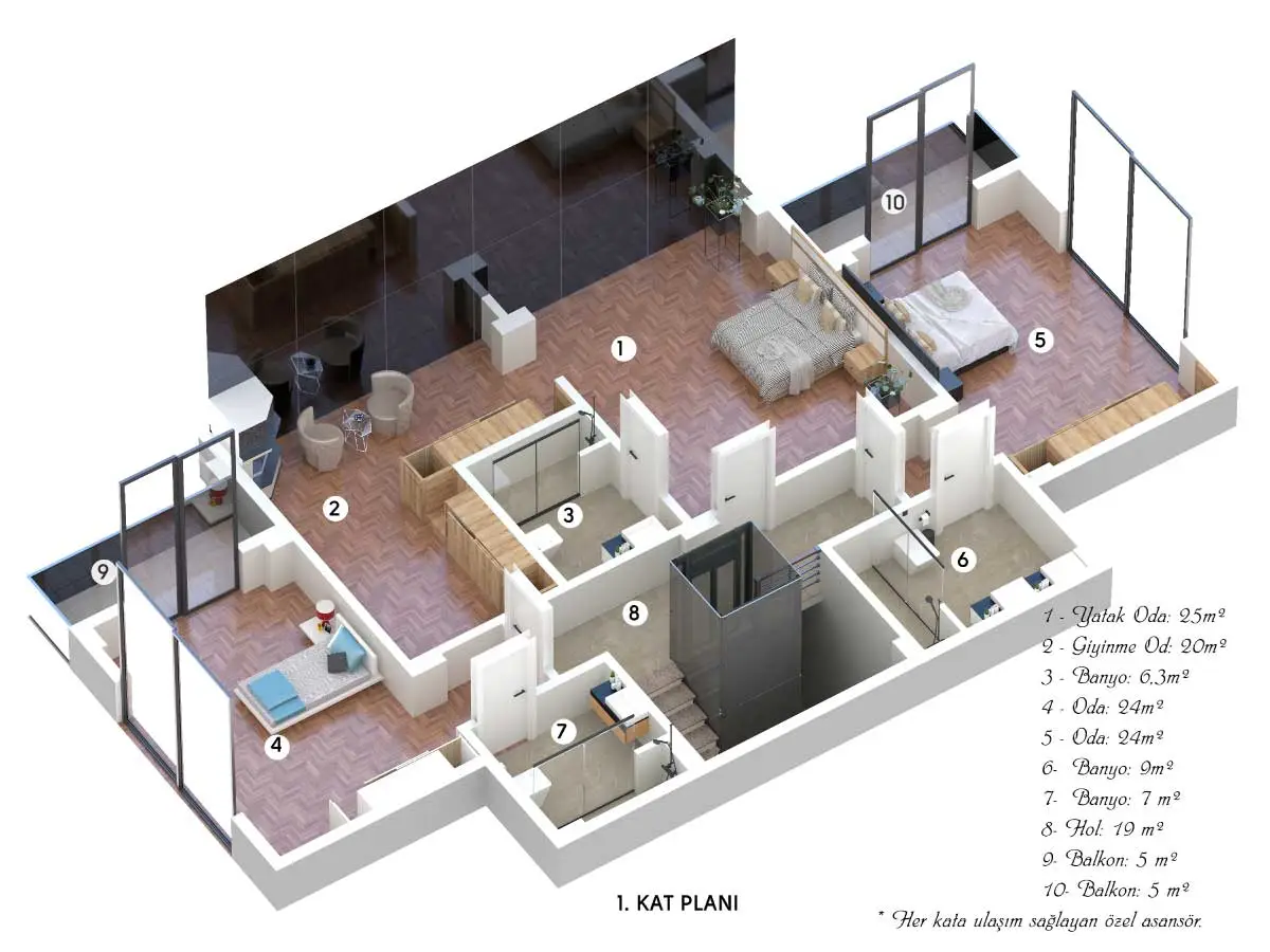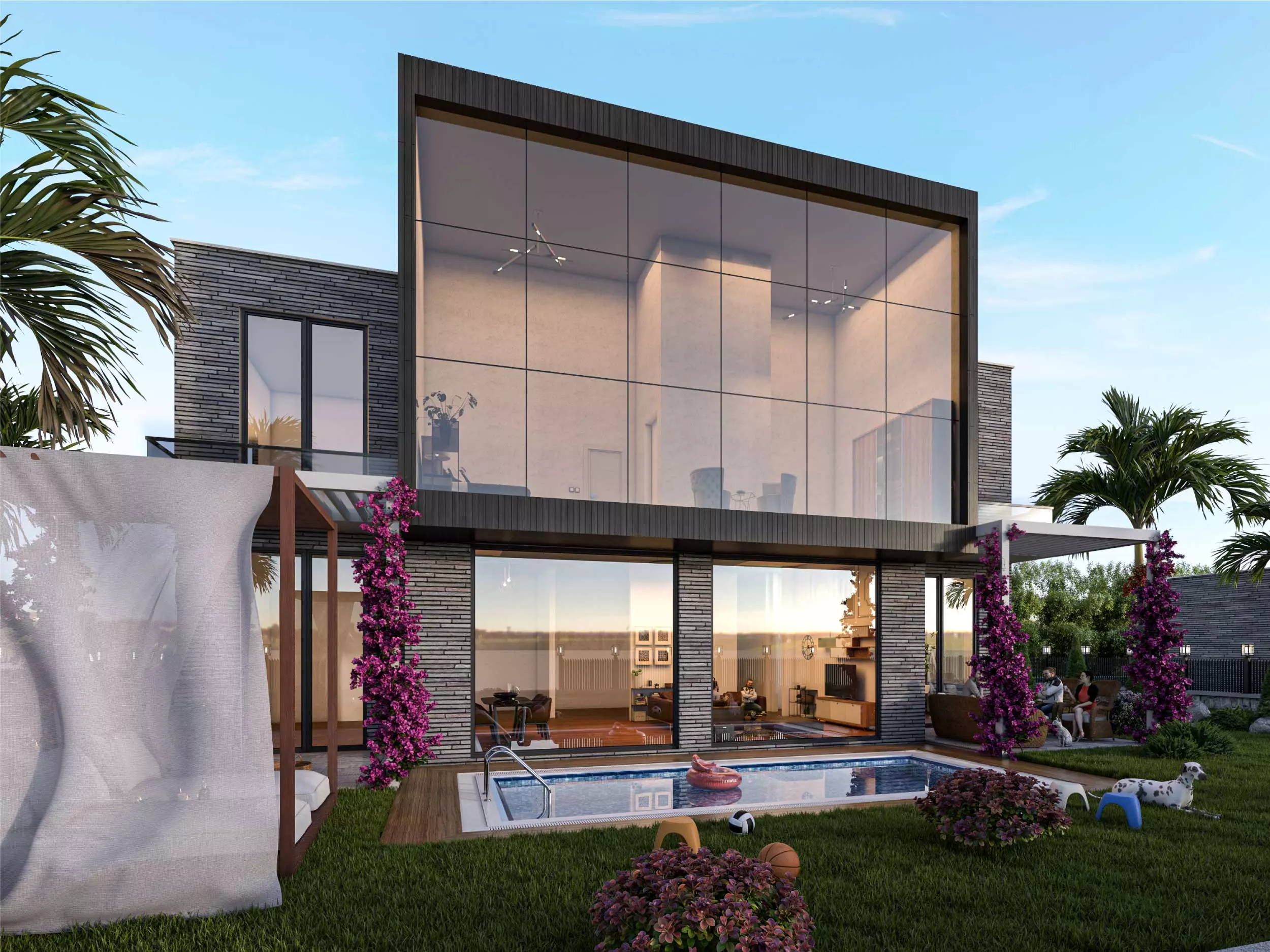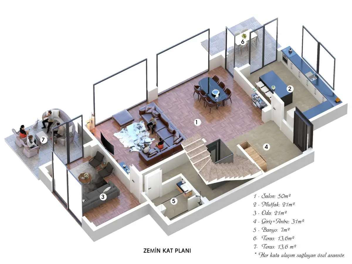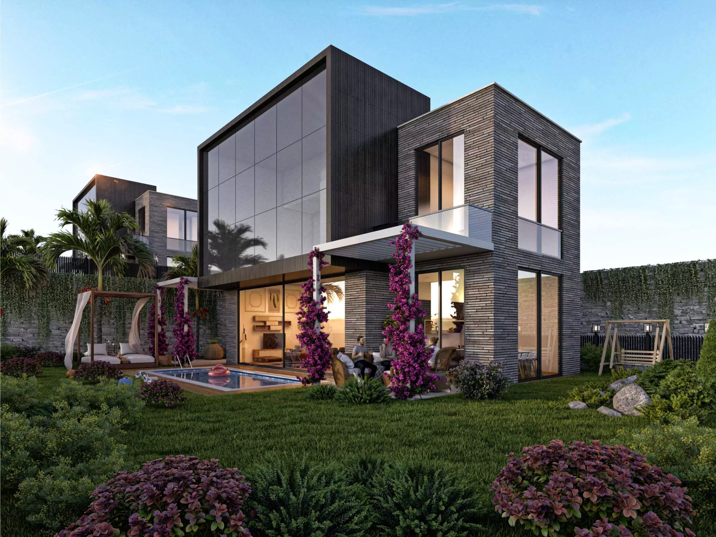 Ferah ve geniş bahçeli, özel yüzme havuzlu projemizde, maviyi ve yeşili evinizin her noktasında hissedeceksiniz.