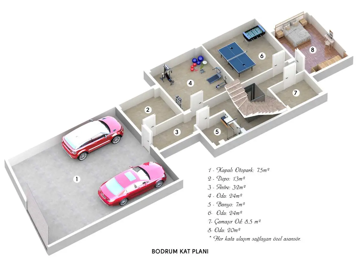 Her villa özel müstakil otopark yer almaktadır.